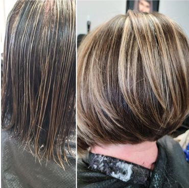 This is a hand painted technique creating a natural dimensional look that does not go all the way to the root, for a "lived in" look